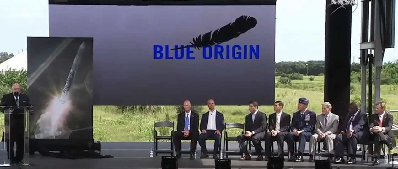 Blue origin picking up the pace at the cape. Blue origin to launch 'new glenn' rockets from cape canaveral. Origin blue canaveral cape launch test build florida scott rick dibello frank bezos governor founder jeff podium seat