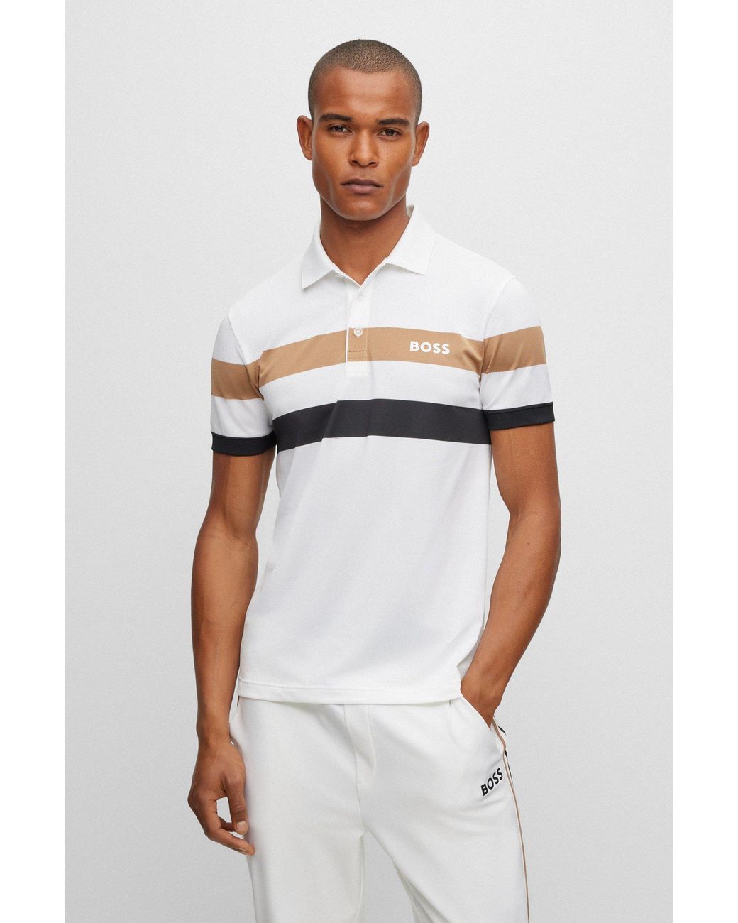 BOSS – BOSS X Matteo Berrettini Slim-fit Polo Shirt With Stripes – White