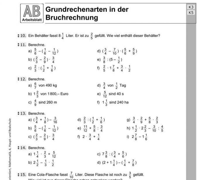 Mathematik Hauptschule Arbeitsblatter