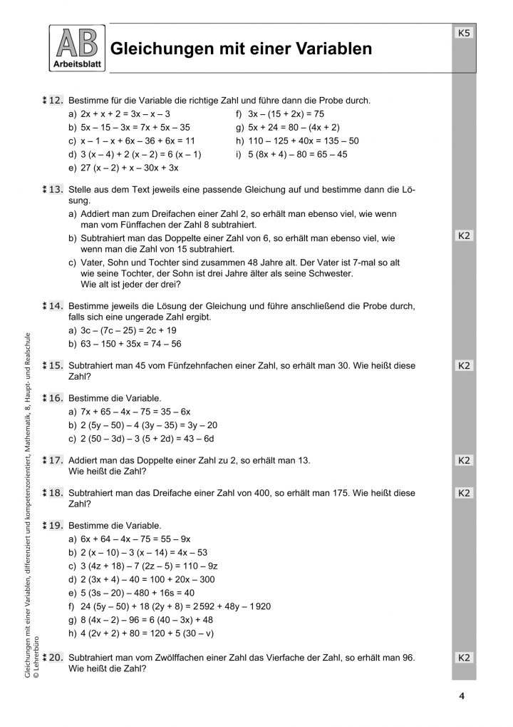 Webarbeitsblatt 1 zum lösen von gleichungen. Die aufgaben sind in drei … Dazu muss ein lineares … 6 aufgaben, 89 […]