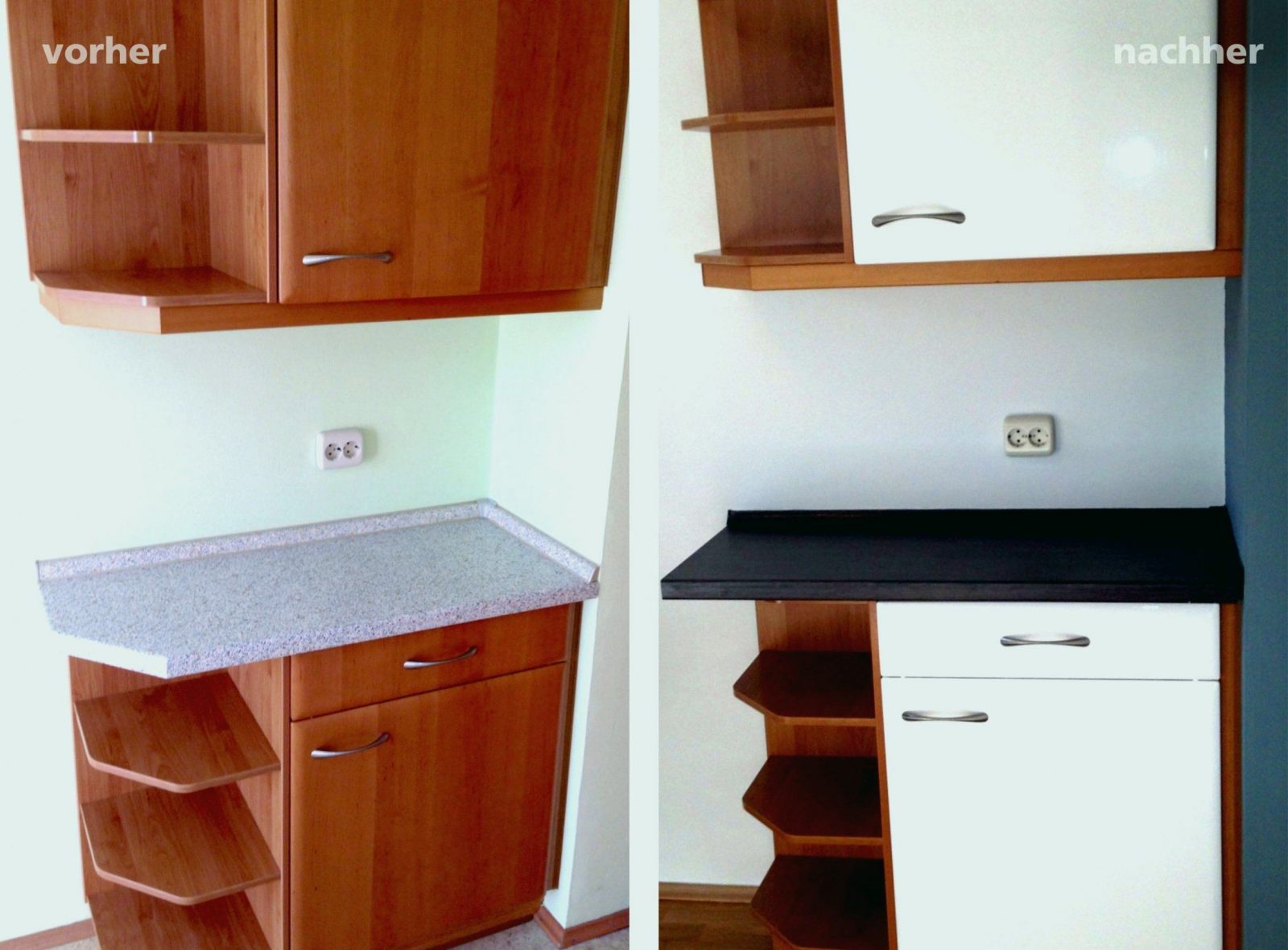 Lege die küchenfront mit der oberfläche nach oben auf den küchentisch und ziehe an einer ecke der folie vorsichtig die schutzschicht ab. Küchenfronten Bekleben Vorher Nachher Genial Klebefolie Kuche