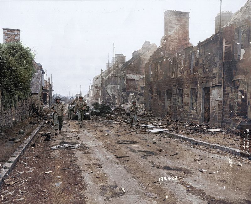 1944 colorized mortain deserted inf div amaral patrolling lines troops torn patrol military normandy twistedsifter brings